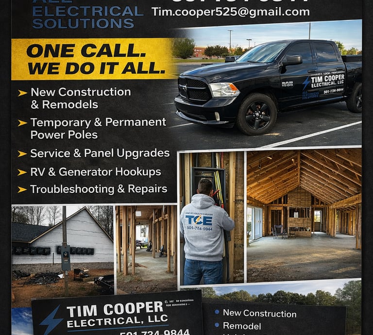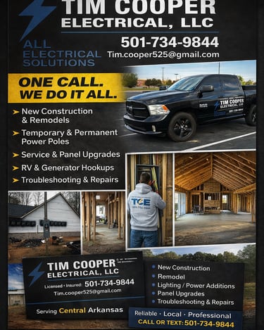 Tim Cooper Electric provides dependable electrical services for new construction, remodels, and system upgrades. We focus on doing the job right the first time with clean workmanship, clear communication, and reliable results.